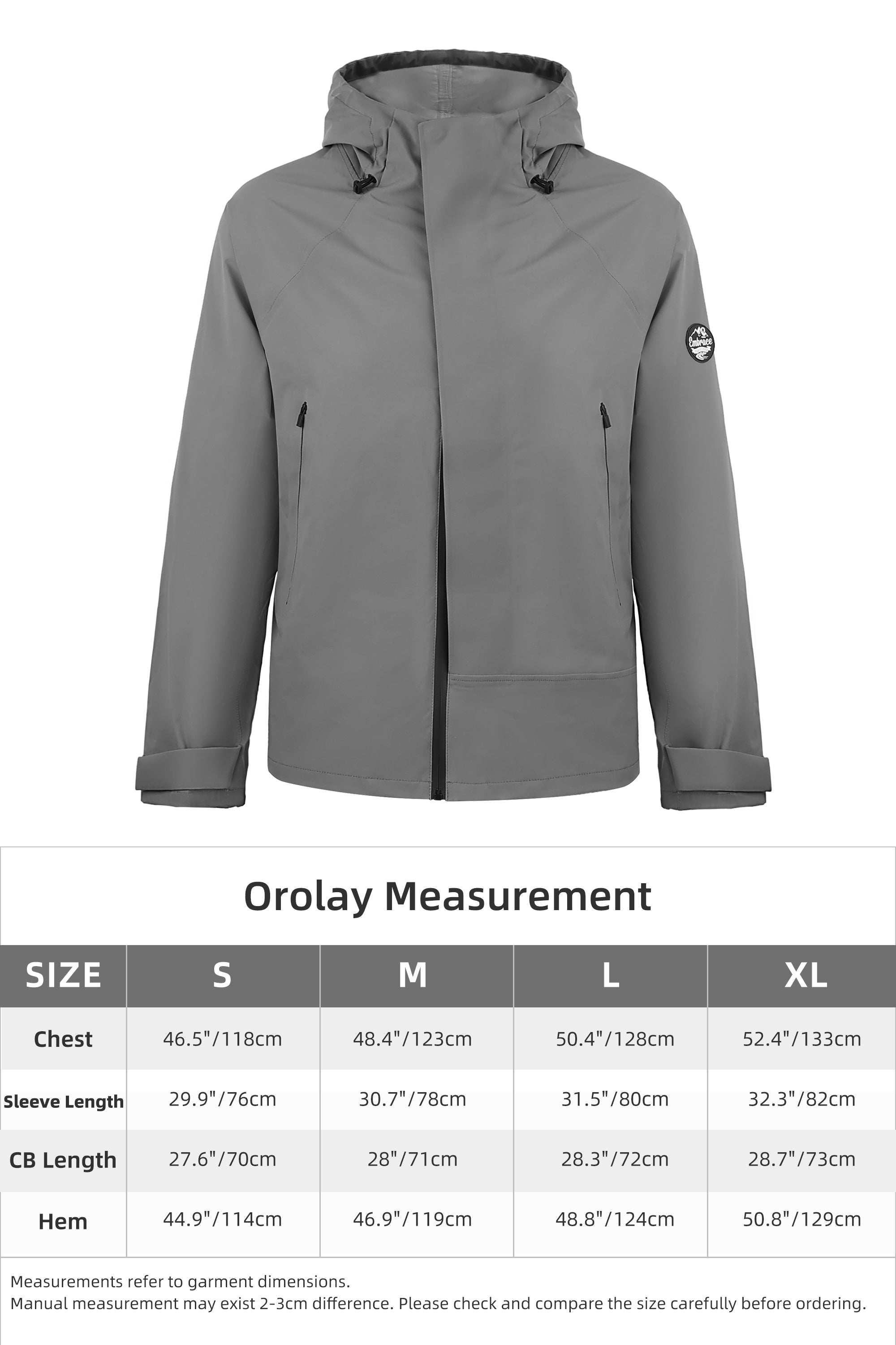 This all-season rain jacket features our waterproof 100% polyester shell with full polyester lining, designed to take the edge off, while keeping you dry and protected in even the hardest of downpours. Ergonomic cuts on the sleeves keep you moving easily while the front waterproof zip and adjustable storm hood will seal out the wettest of elements. Suitable for any outdoor activities such as traveling, hiking, sailing, fishing, camping and daily wear.