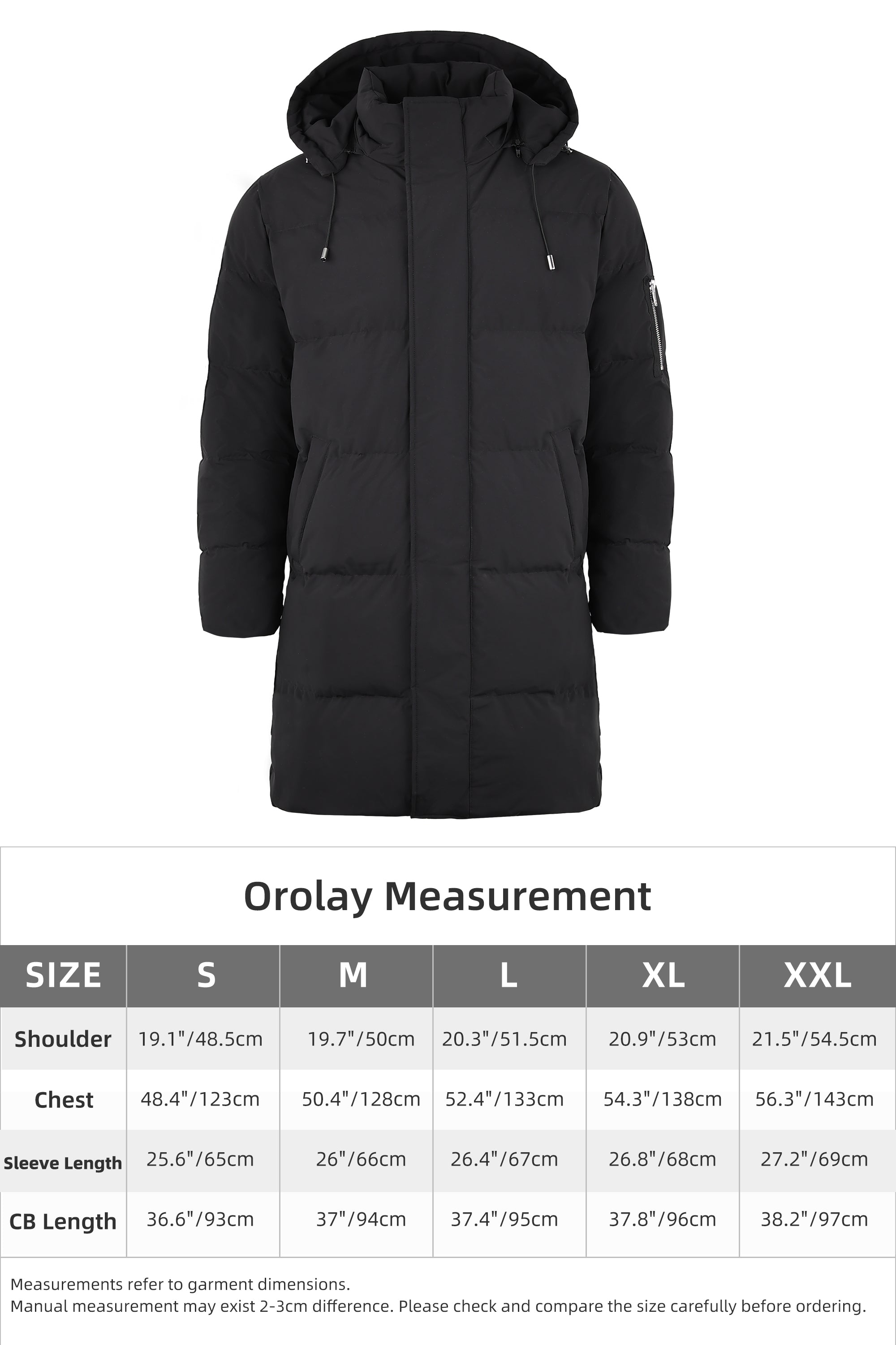 - With 1 small pocket with a zipper and Orolay logo on the left sleeve, and 2 big side pockets, this down coat will keep you warm and convenient for daily use.